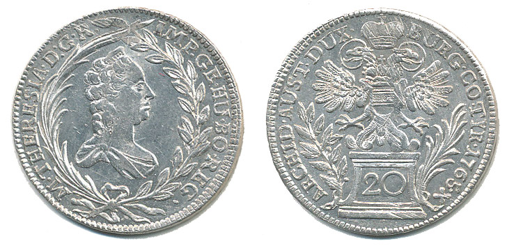 20 Krejcar 1765, Vídeň, N.30_tém.