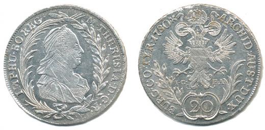 20 Krejcar 1780 IC-FA, Vídeň, N.55_tém.