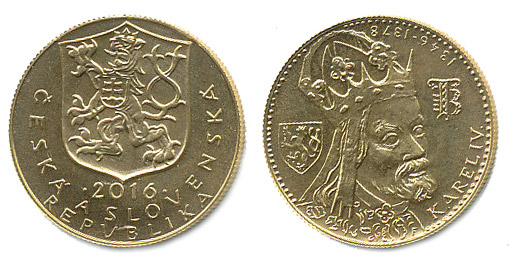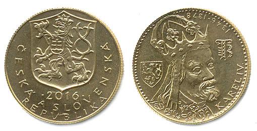 Dukát - k 700.výr.narození Karla IV. 1316 - 2016 Portrét čelně mírně zprava (vzor dukát 1978) / čs.znak, opis Česká a slovenská republika, ryz.986, 19,75 mm, 3,49 g, náklad 300 ks, čís.225minc.Kremnice_orig.etue se smalt.českým lvem + certifikát