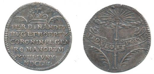 Nesign. - střední žeton ke korunovaci na římského krále v Regensburgu, 18.VI.1653, Boží oko / pod korunou 6řádk.nápis, žezlo, palmové ratolesti a nápis na stuze, Ag 24 mm, 2,19 gNov.VIII/D-8b, LG.II/474, Mo.845, Ho.2020_R!