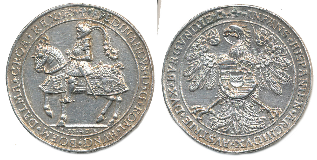 Tolar na podívanou "Schautaler" 1541, Císař na koni zleva, opis / jednohlavý orel, opis Ag 52 mm, 39,60 g, Ma.2037, LG.II/100_dr.st. po o. R!