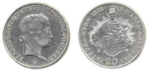20 Krejcar 1838 B - s madonou_tém.
