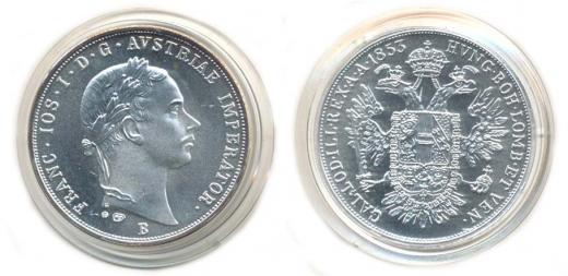 1/2 Tolar 1853 B - oficiální novoražba Ag 900/1000, 30 mm, 13,2 g vydala minc.Kremnica, nákl.200 ks_orig.kapsle + dřev.etue + certifikát