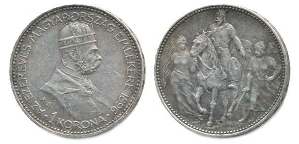 1 Koruna 1896 KB mileniová_tém.