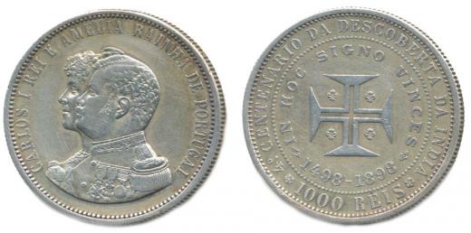1000 Reis 1898 - 400.výr.objevení Indie, Ag, Y.27, KM.539