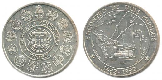 1000 Escudo 1992 - 500.výr.objevení Ameriky, KM.657