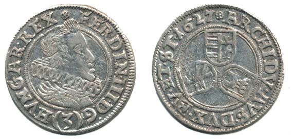 3 Krejcar 1627 HG, Huser Glacensis, Nech.99, MKČ.1327a bez značky mincmistra_R!