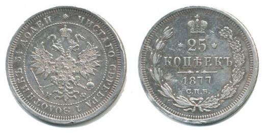 25 Kopějek 1877 SPB-NF, Y.23, Uzd.1884 skup.XIX-V/v_dr.hr.
