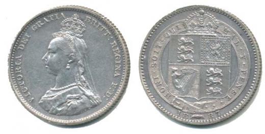 1 Shilling 1887, Y.20, KM.761, Seaby3926_tém.