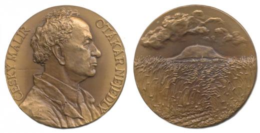 Otakar Nejedlý (český malíř) - portrét zprava, opis / panorama krajiny s horou Říp, Sign., Bronz 60 mm, 92,17 g