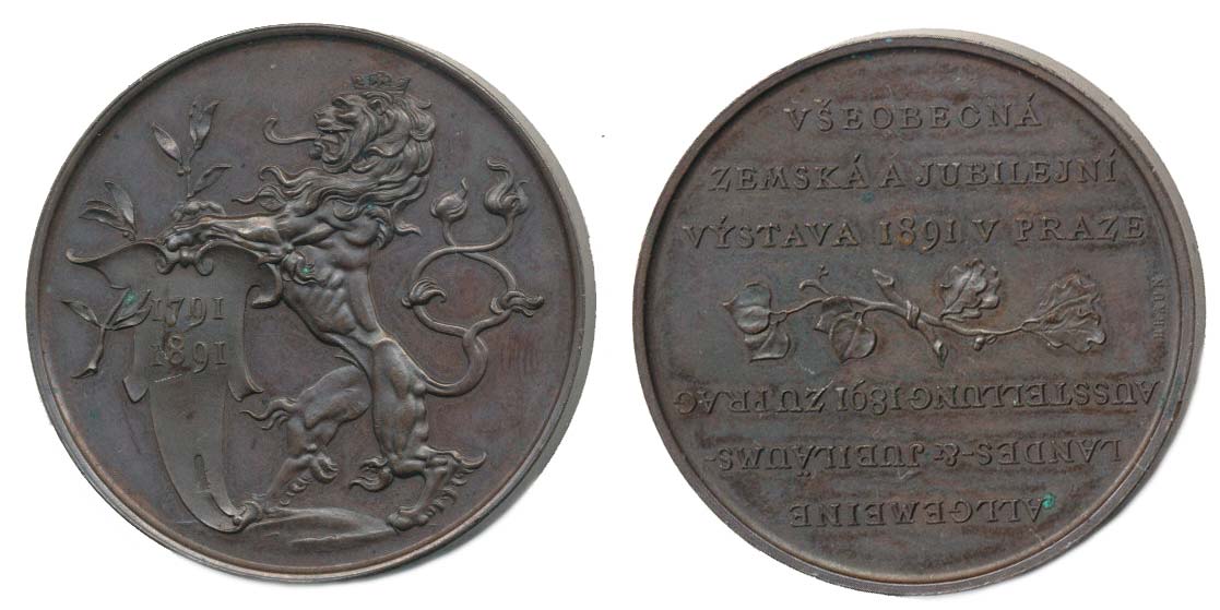Braun - Záslužná medaile pro vystavovatele#Br Český lev s praporcem / Lipová a dubová ratolest, český a německý nápis, Sign., Bronz 44 mm, ŠFP.17c