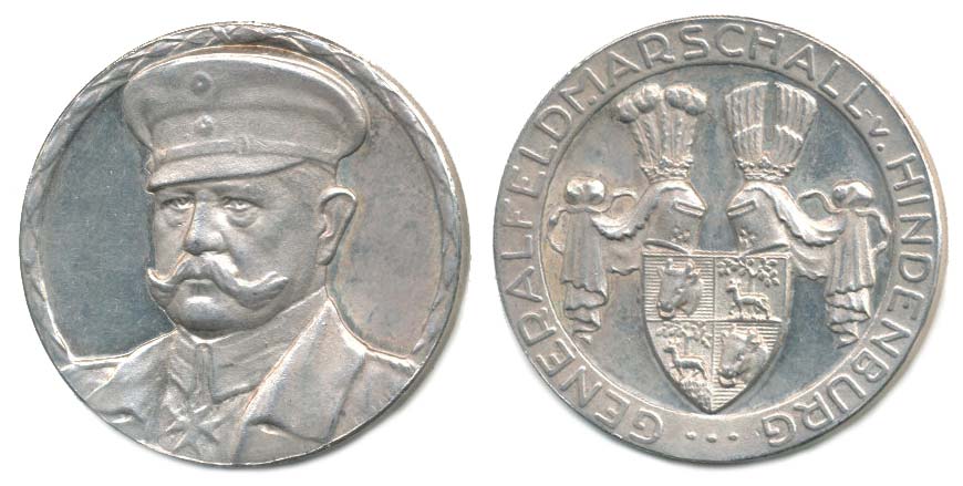 Generál polní maršál von Hindenburg - medaile 1914 Poprsí mírně zleva, opis / znak převýšený dvěma klenoty, opis Sign.F.Eue / Ball / Berlin, na hr. SILBER 900, Ag 34 mm, 17.21 g, Zetz.6010_R!