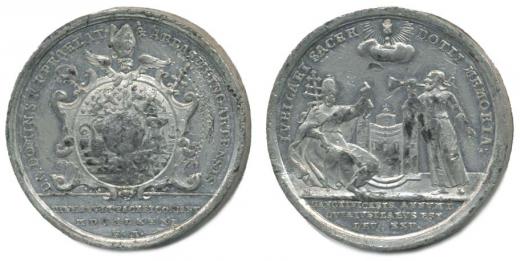 Dominikus Schnitzer - medaile k 50.výr. kněžství 1731 - 1781 Dvě postavy pod Božím okem, opis / široký zdobený znak, opis Sign.F.M. (Matzenkopf), Sn 35 mm, 20,22 g_tém.