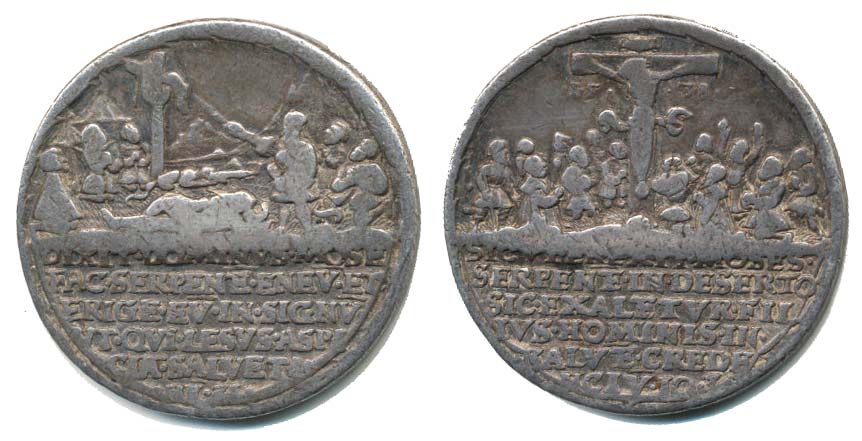 Nürnberg (Norimberk) - Izraelité v táboře před kovovým hadem, 6řádk.nápis / Kristus na kříži, okolo postavy, 6řádk.nápis Ag 34 mm, 19,68 g, Aurea 2012/412_R!