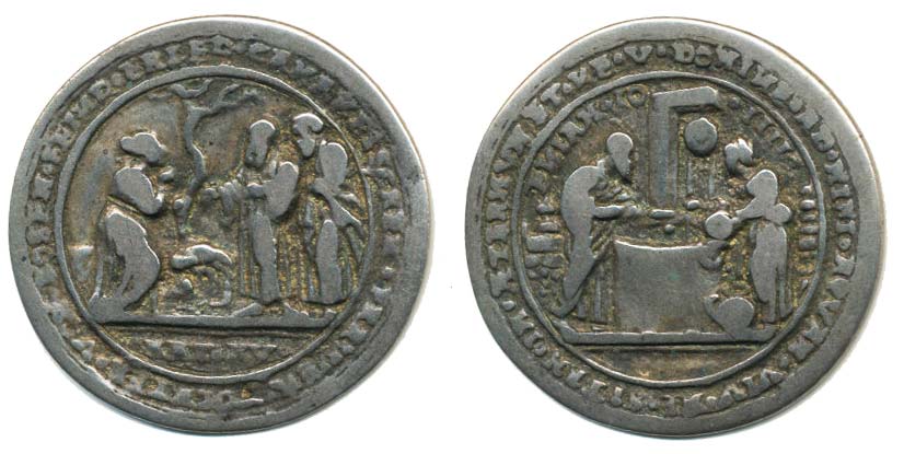 Kristus a Samaritánka u studny, opis / Kristus, učedník a žena kananejská, opis, Ag 33 mm, 9,32 g Ka.427, Don.4356, Enz.212, jako Gross.1005_R!