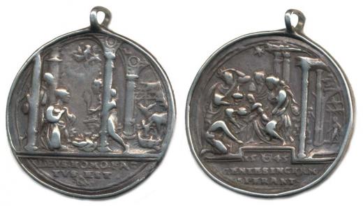 Klanění Svatých tří králů - Klanění pastýřů z r.1545 Sign.CW, Ag 40 mm, 20,39 g, Katz.231 tab.XXXIII/1, Enz.101 Kill.5769, Do.4324_dob.ouško R!