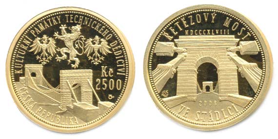 2500 Koruna 2008 - řetězový most ve Stádlci _orig.kapsle + etue + certifikát