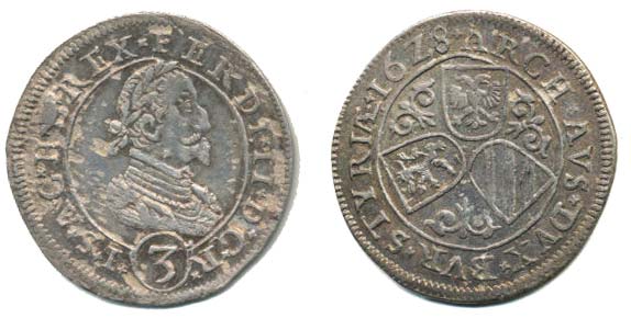 3 Krejcar 1628, Štýrský Hradec, Her.1085