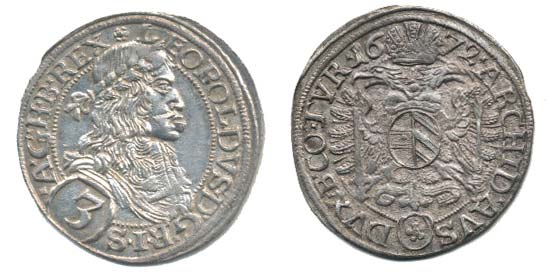 3 Krejcar 1672, Vídeň-Faber, Nech.1969, Her.1318_tém.