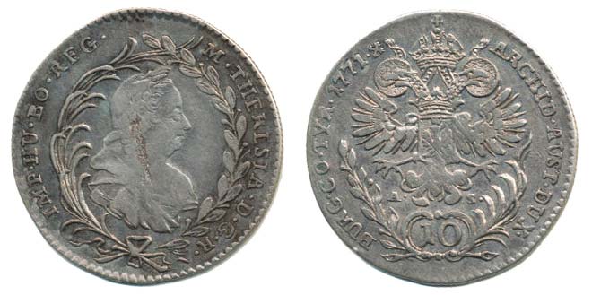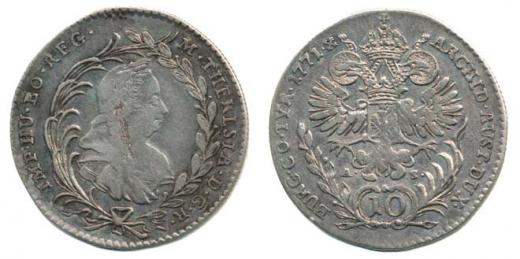10 Krejcar 1771 A.-S., Hall, Nový.56, Nov.89 _dr.v.stř. v av., dr.just. v rev. R!