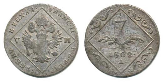 7 Krejcar 1802 A - zřet.st.přeražby z 12 Kr.1795