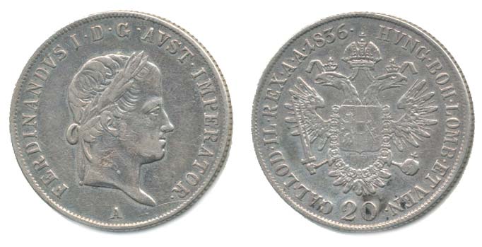 20 Krejcar 1836 A - FERDINANDUS_dr.v.stř. v av.