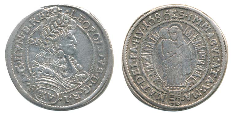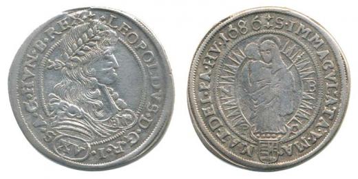 XV Krejcar 1686 NB-PO, Velká Baňa-Österreicher, Nech.1538, Höl.86.1.2, Husz.1435, Her.1082v