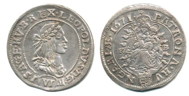 VI Krejcar 1671 KB, Nech.1192, Hus.1450, Her.1245
