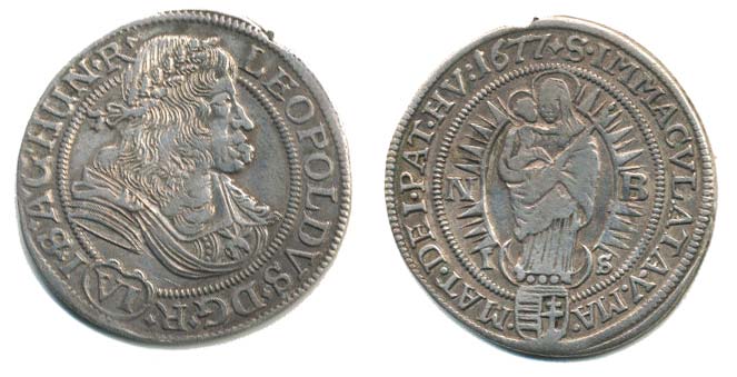 VI Krejcar 1677 NB-IS, Velká Baňa-Mittermayer, Nech.1559, Hus.1453, Her.1255 _kraj.stř. R!