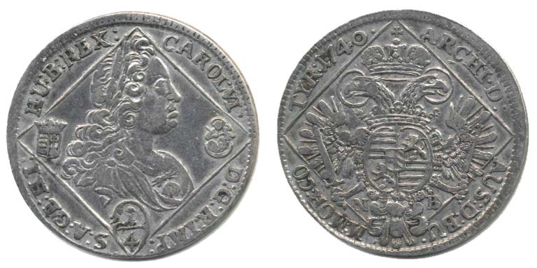 1/4 Tolar 1740 NB, Velká Baňa, Husz.1623, Her.626_dr. čištěný v av.
