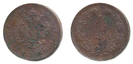 4 Krejcar 1860 B_dr.st.měď., dr.hr.