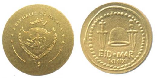 1 Dolar MMIX (2009), čepice se dvěma dýkami (dle denáru Bruta) Au 11,8 mm, 0,49 g_orig.kapsle