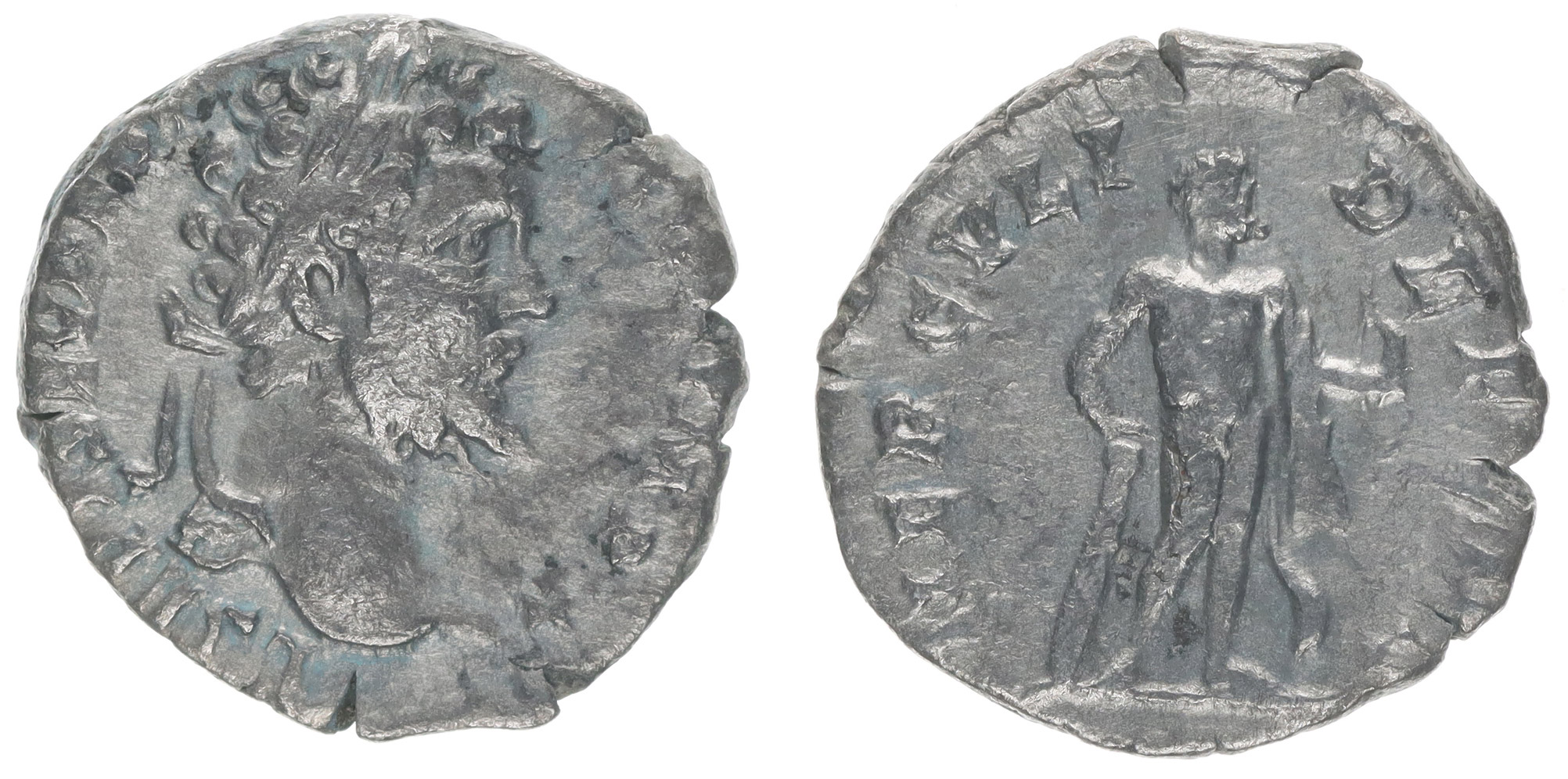 AE Denár, Rv:"HERCVLI DEFENS", stojící Hercules zprava S.1654, C:210