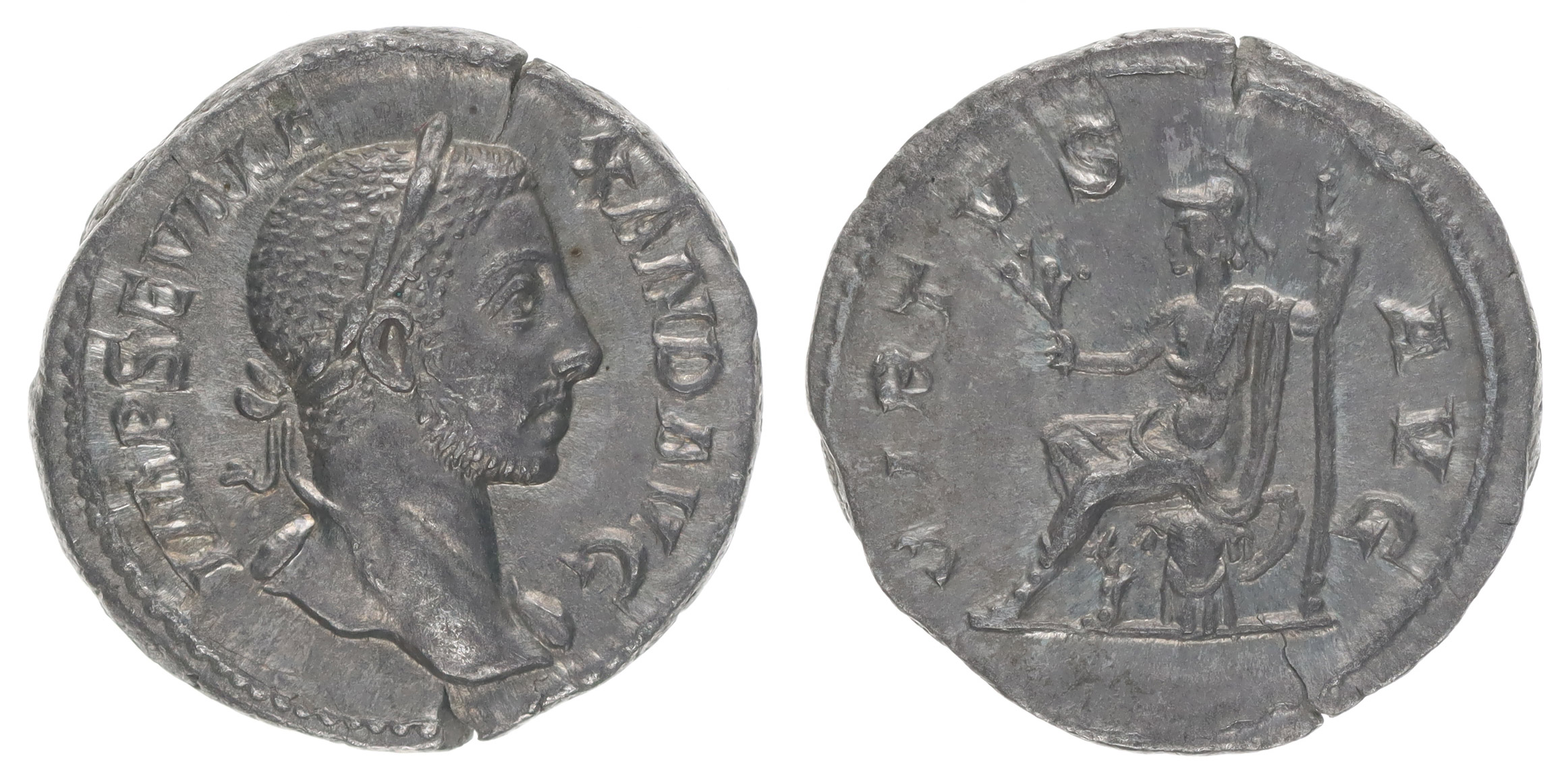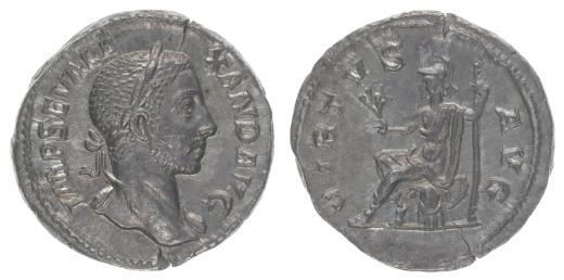 AR Denár, Rv:"VIRTVS.AVG.", sedící Virtus zleva drží palmovou ratolest a žezlo, S.2140, C.580, RIC.221