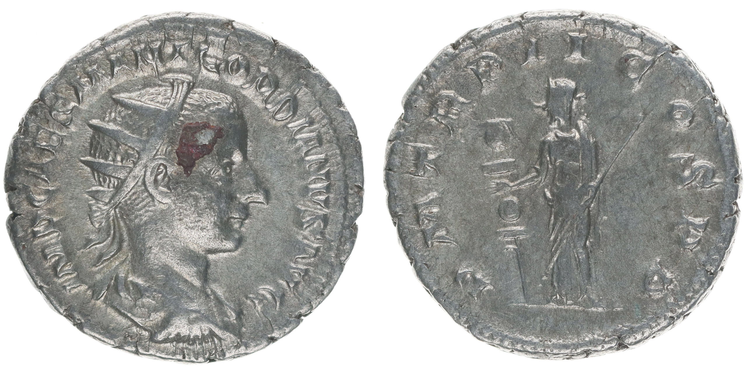 AR Antoninianus, Rv:"P.M.TR.P.II.COS.P.P.", stojící Fides mírně zleva, minc.Řím 238-9, pod.S.2346, RIC.15