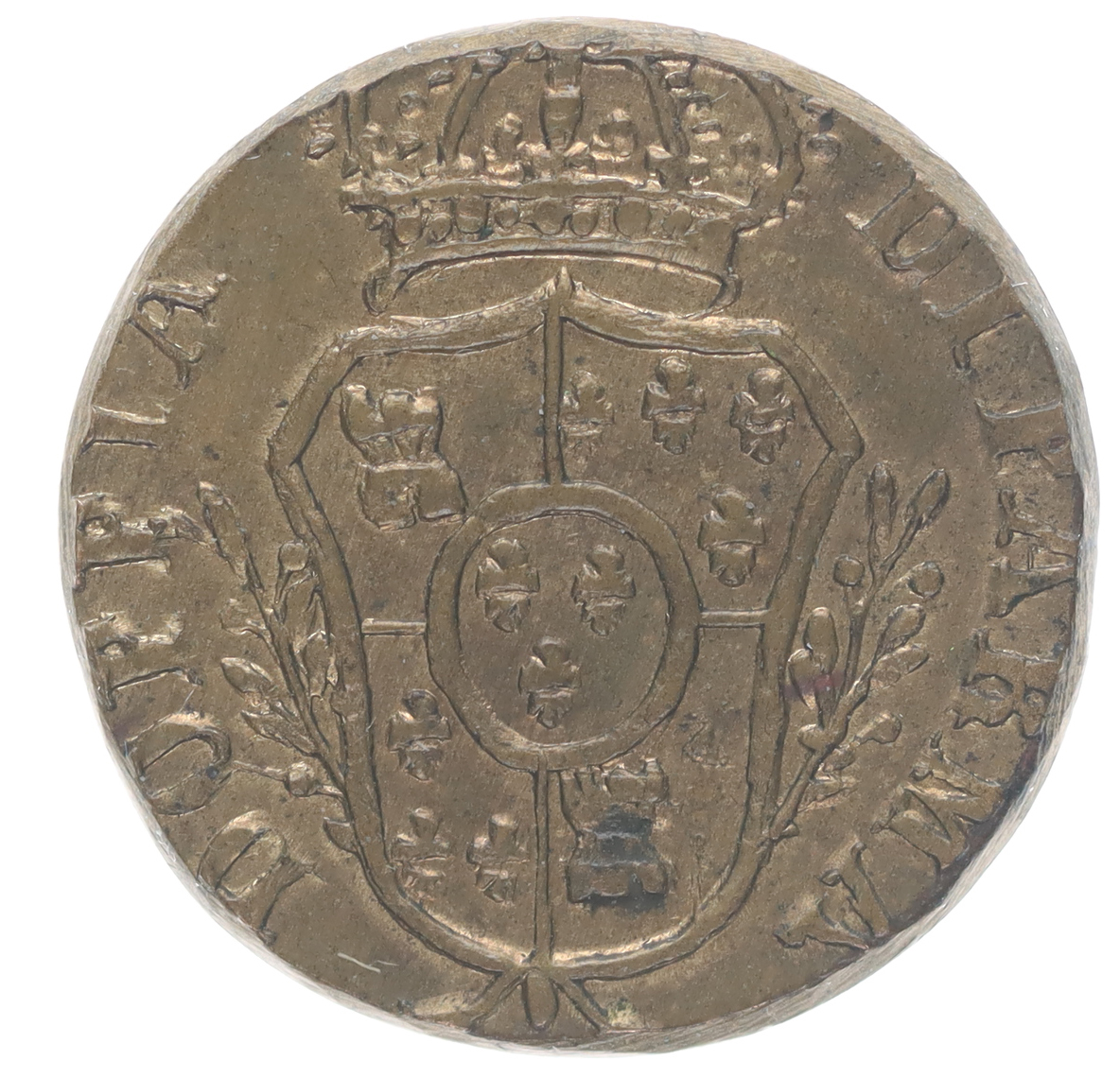 Mincovní závaží (1/2 Dopia), korunov.znak Parmy s opisem, b.l. Mosaz 18 mm, 3,57 g_jednostranné R!