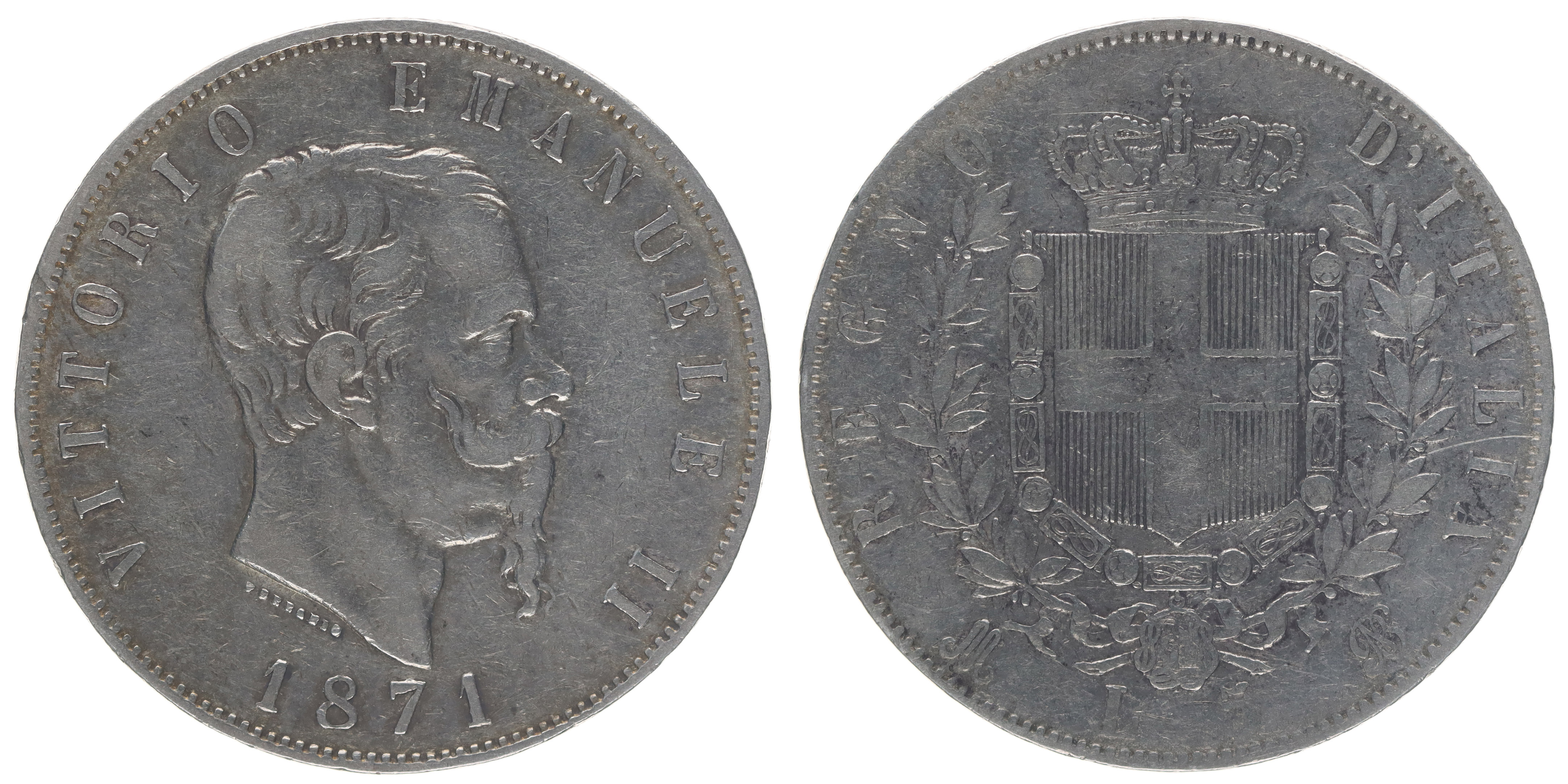 5 Lira 1871 M, Milano, KM.8.3