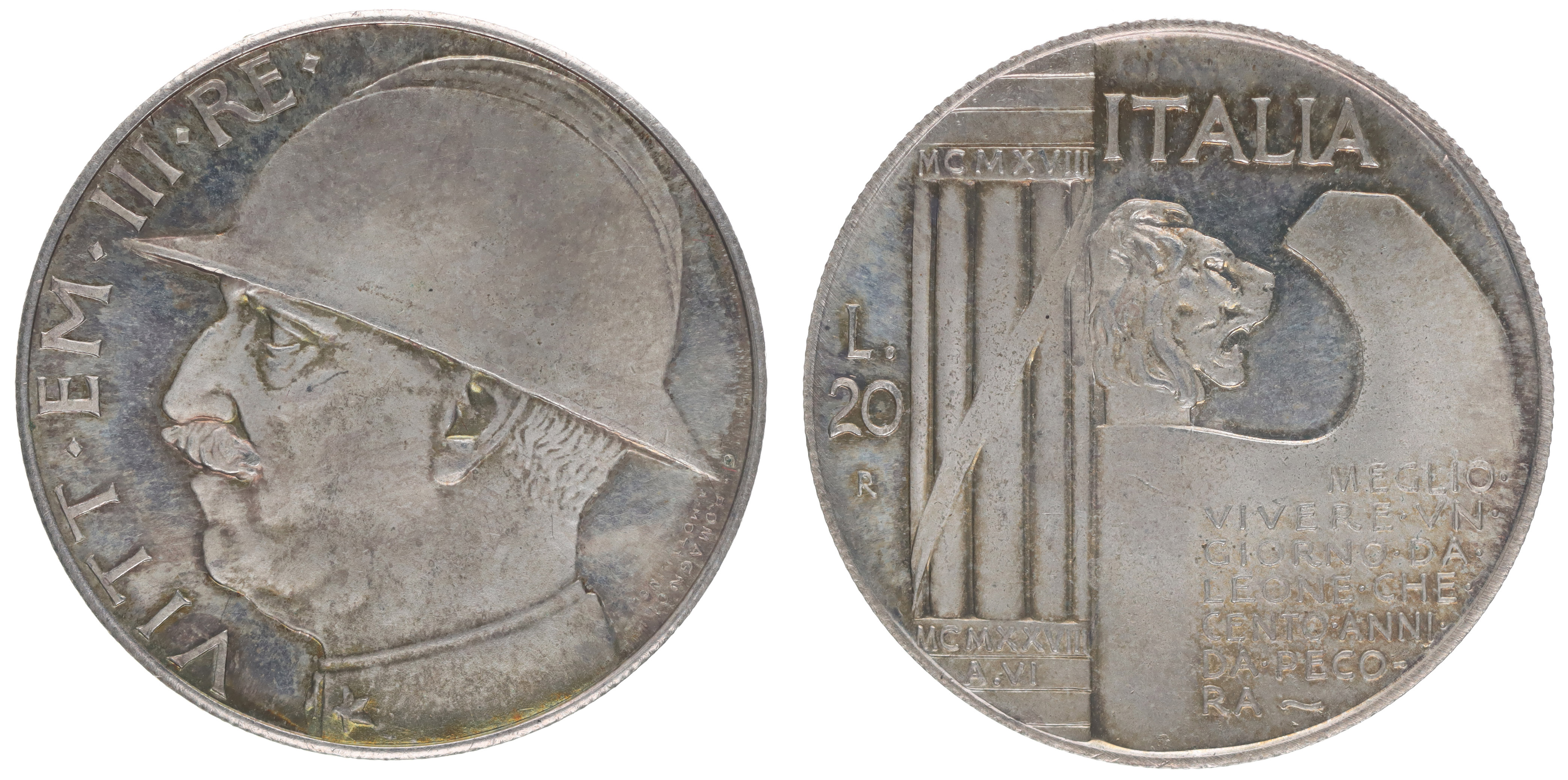 20 Lira 1928 ( rok VI. ), král v přilbě, KM.70_pozdější ražba