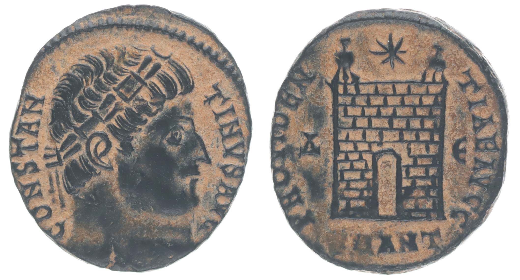 AE3, Rv:"PROVIDENTIAE.AVGG.", táborová brána, minc.Antiochia S.3778pod., C.454pod., RIC.79