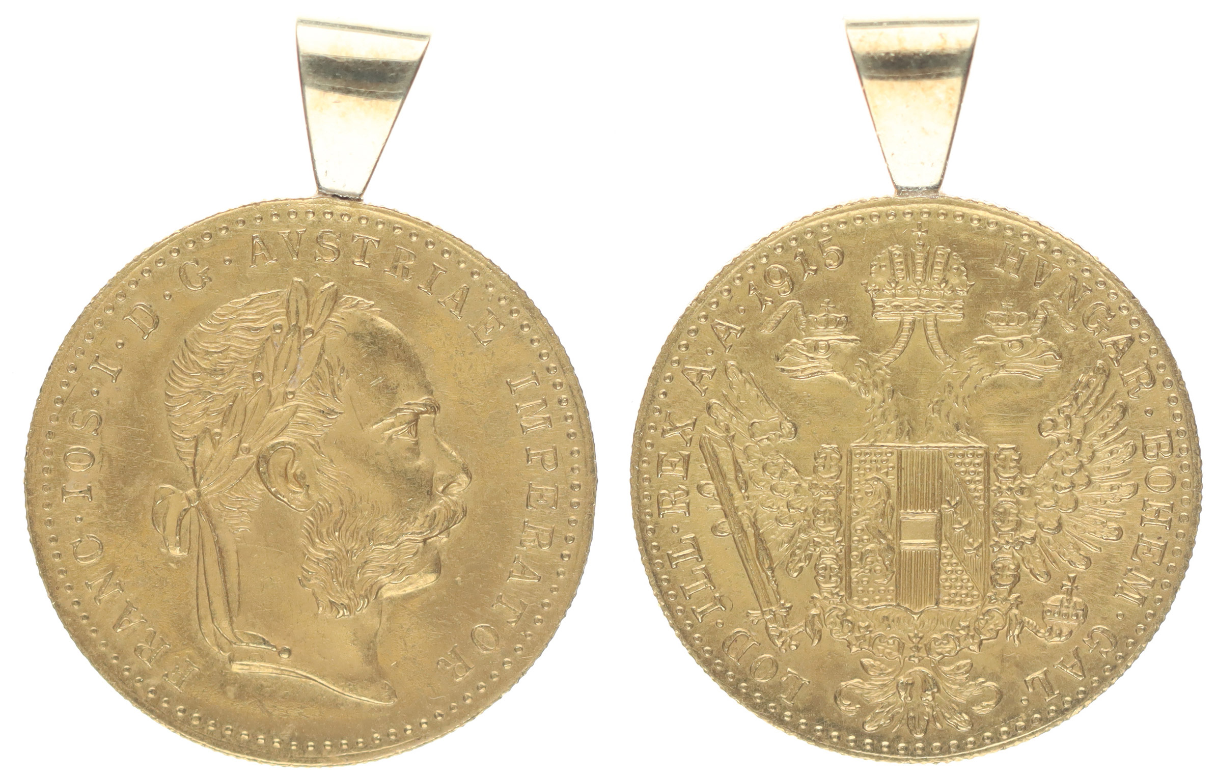 Dukát 1915 b.zn. - novoražba_Au ouško, celk.váha 3,88 g