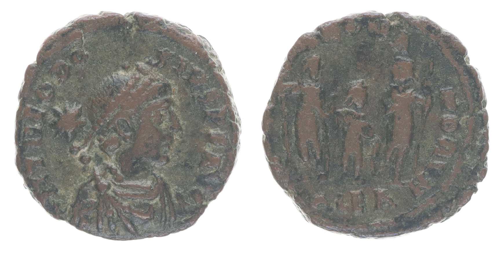 AE3, Rv:GLORIA ROMANORVM" 3 stojící postavy minc.Alexandria, S.-, RIC.159(X.)