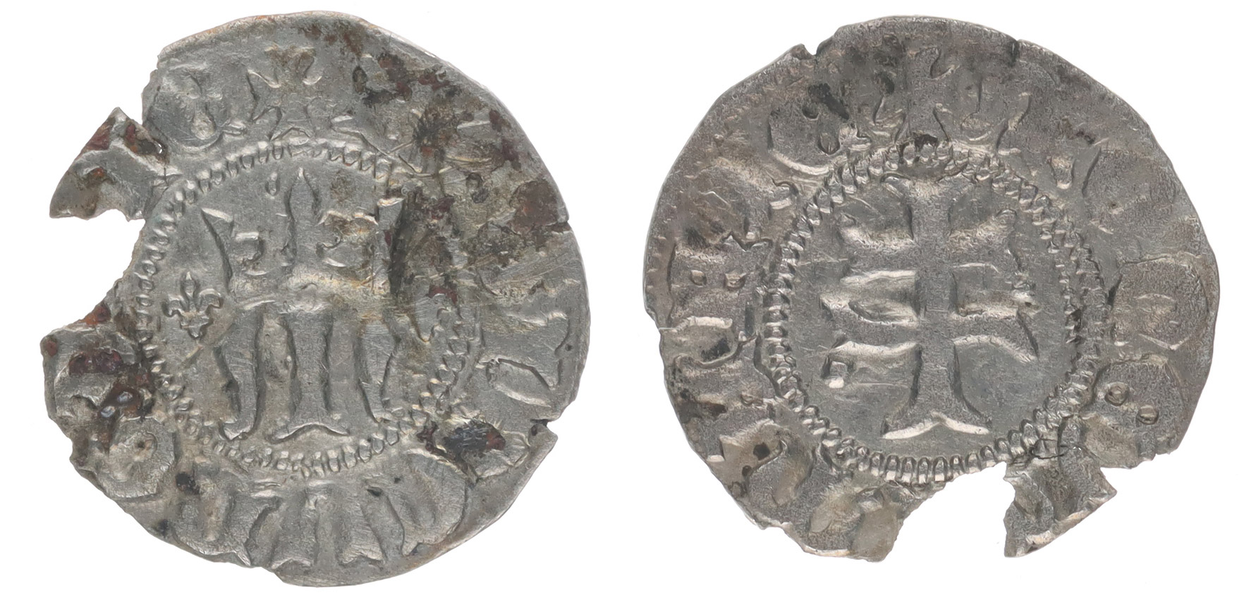 Denár b.l., zn.2 lilie, Hus.566, U.452_vyl.okraj