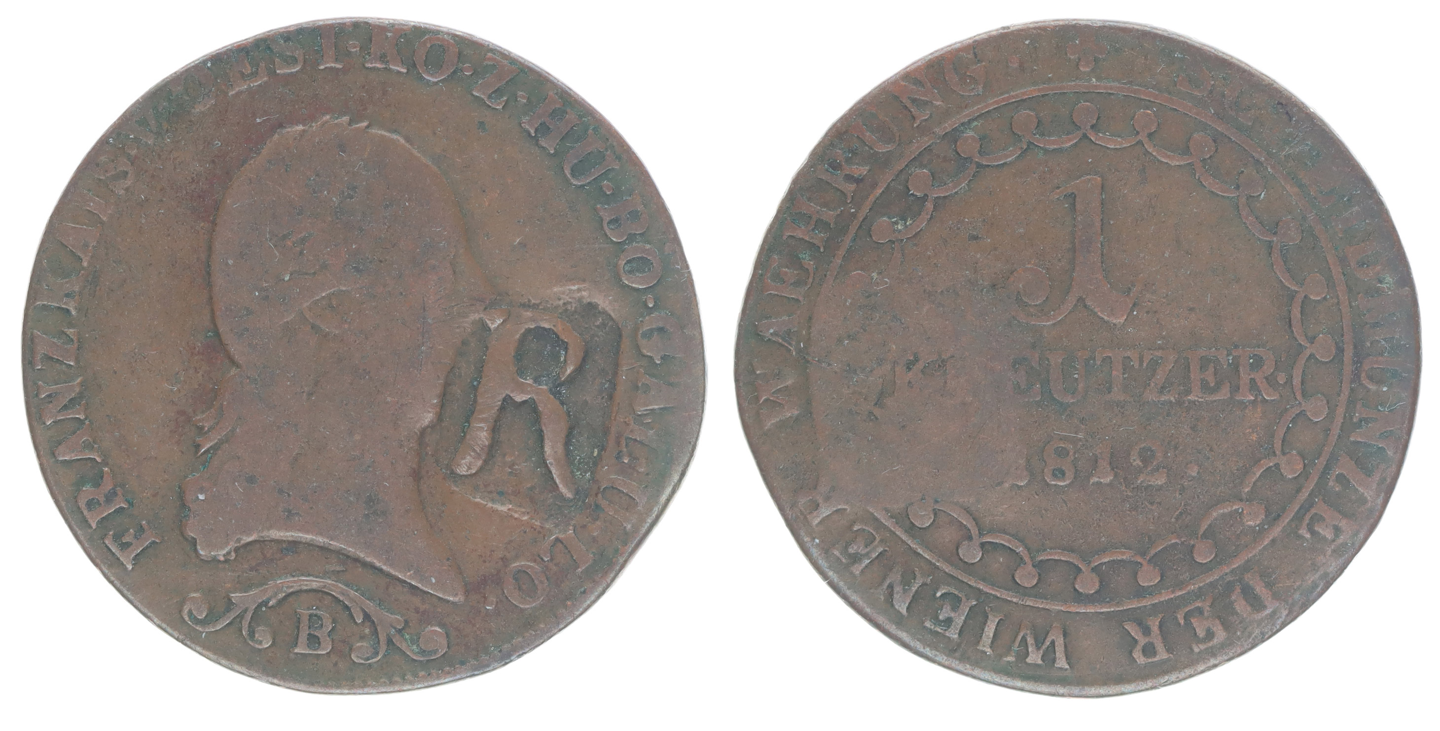 Cu Krejcar 1812 B, minc.Kremnice -2/2- s kontramarkou "R" v av._R!