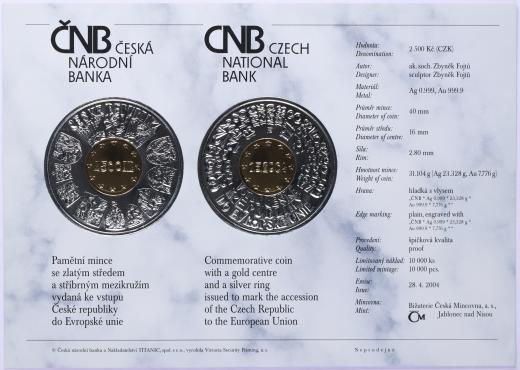 Karta (certifikát) pro minci 2000 Kč 2004 - vstup ČR do EU