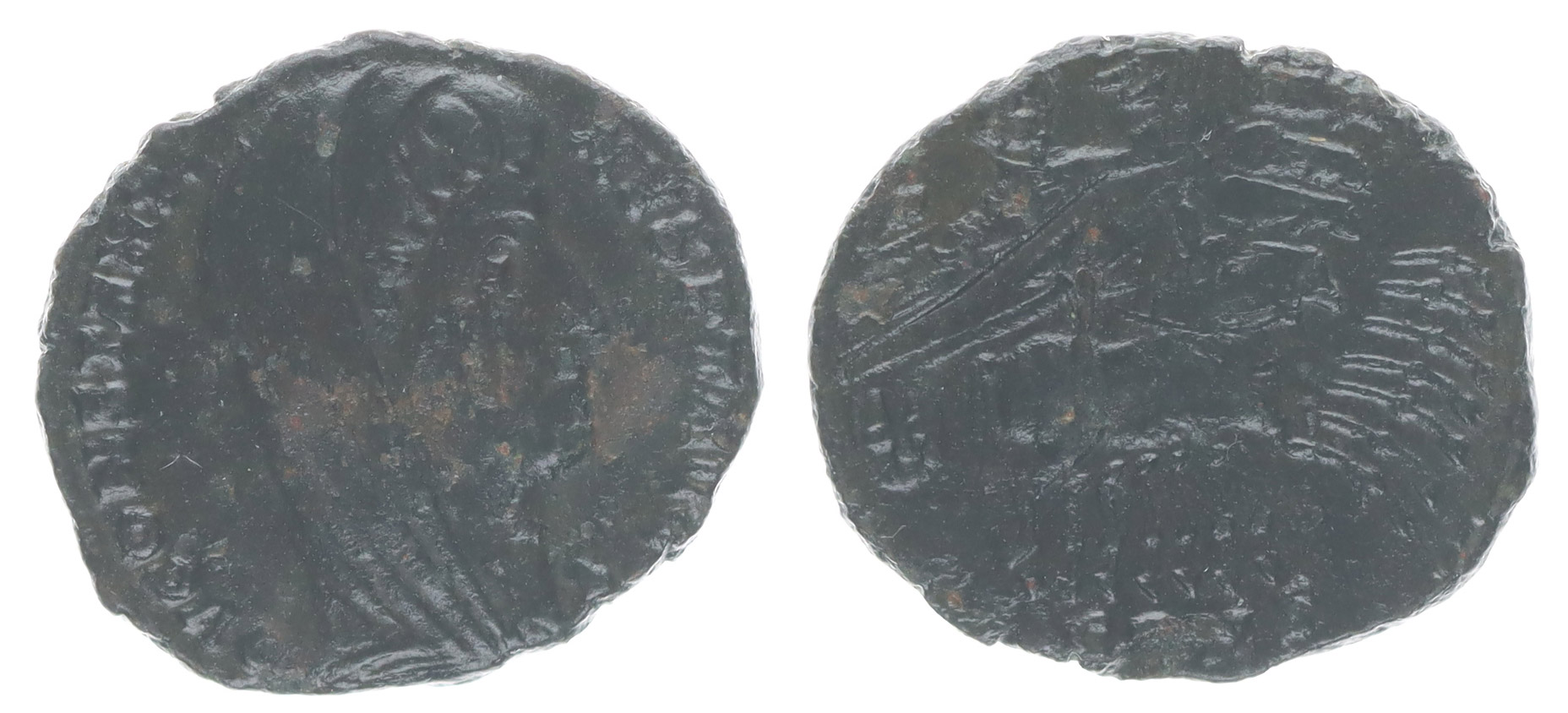 AE4 - posmrtný, Rv: Constantinus v quadriz zprava, minc.Constantinopolis, S.3789, C.760, K.37(VIII)