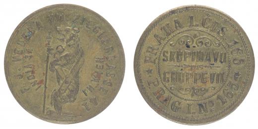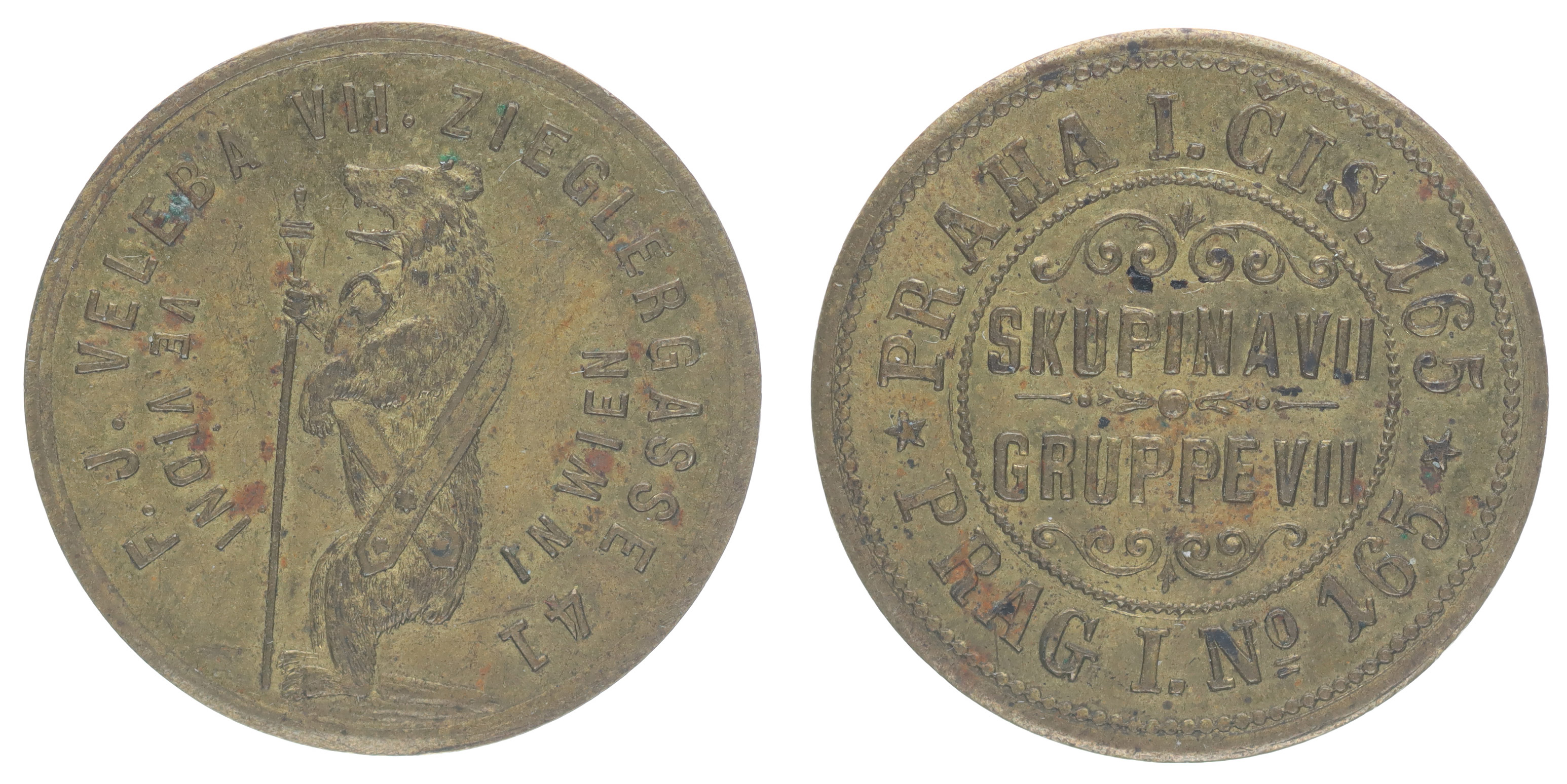 Upomínkový jeton fy. Veleba, Zieglergasse 41, Wien Vystavovaný pohyblivý automat v podobě medvěda, opis / česko-německý nápis, Nesign., Mosaz 26 mm, ŠFP.67