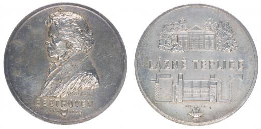 L.Havelka - Beethoven, 1770 - 1825, b.l.(1985) Portrét zleva, 2řádk.nápis / lázně Teplice, 2 budovy Sign., LH85, Postř.med. 40 mm, 31,24 g