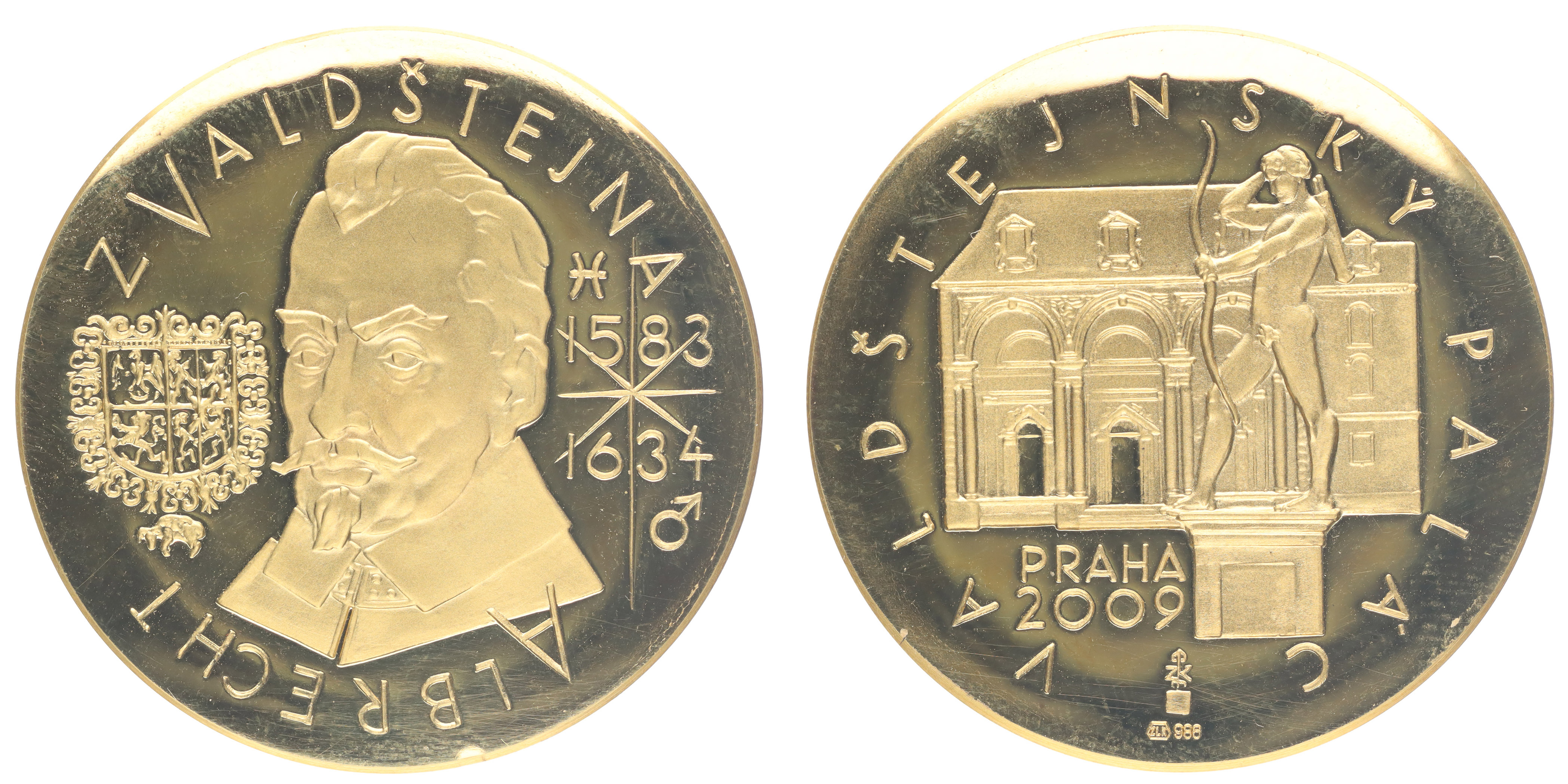 Z.Kolářský - Valdštejnský palác Praha 2009 Poprsí vévody čelně mírně zleva, opis / budova paláce, sousoší, opis, Punc.986, Au 35 mm, 17,28 g, číslov. na hr. 31_R!