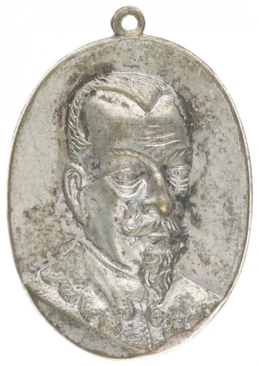 Oválná dutá medailka - poprsí čelně, Postř.26x18 mm _orig.ouško jednostr.