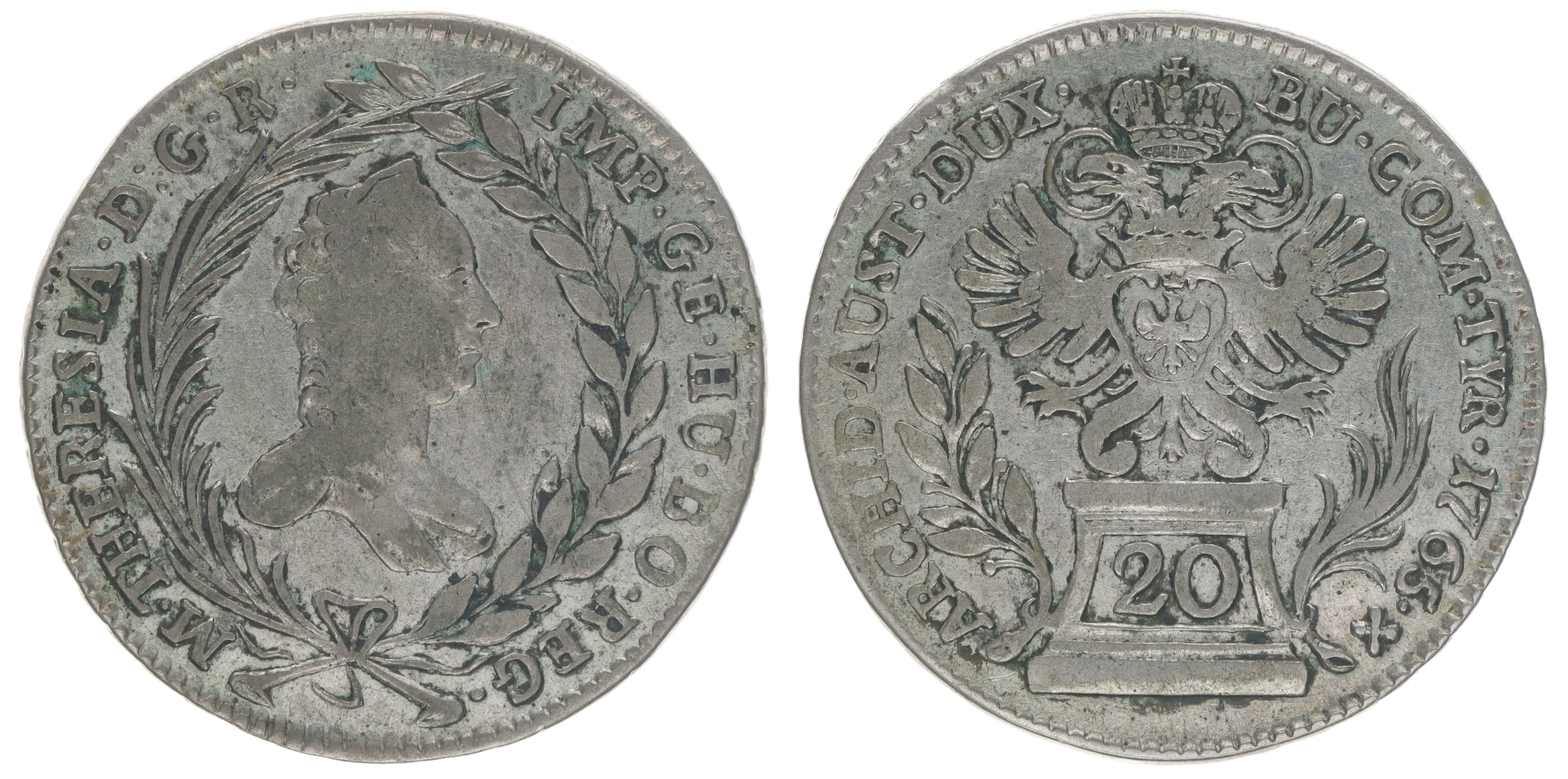 20 Krejcar 1765 Hall, Nový.30, Nov.79, Her.889
